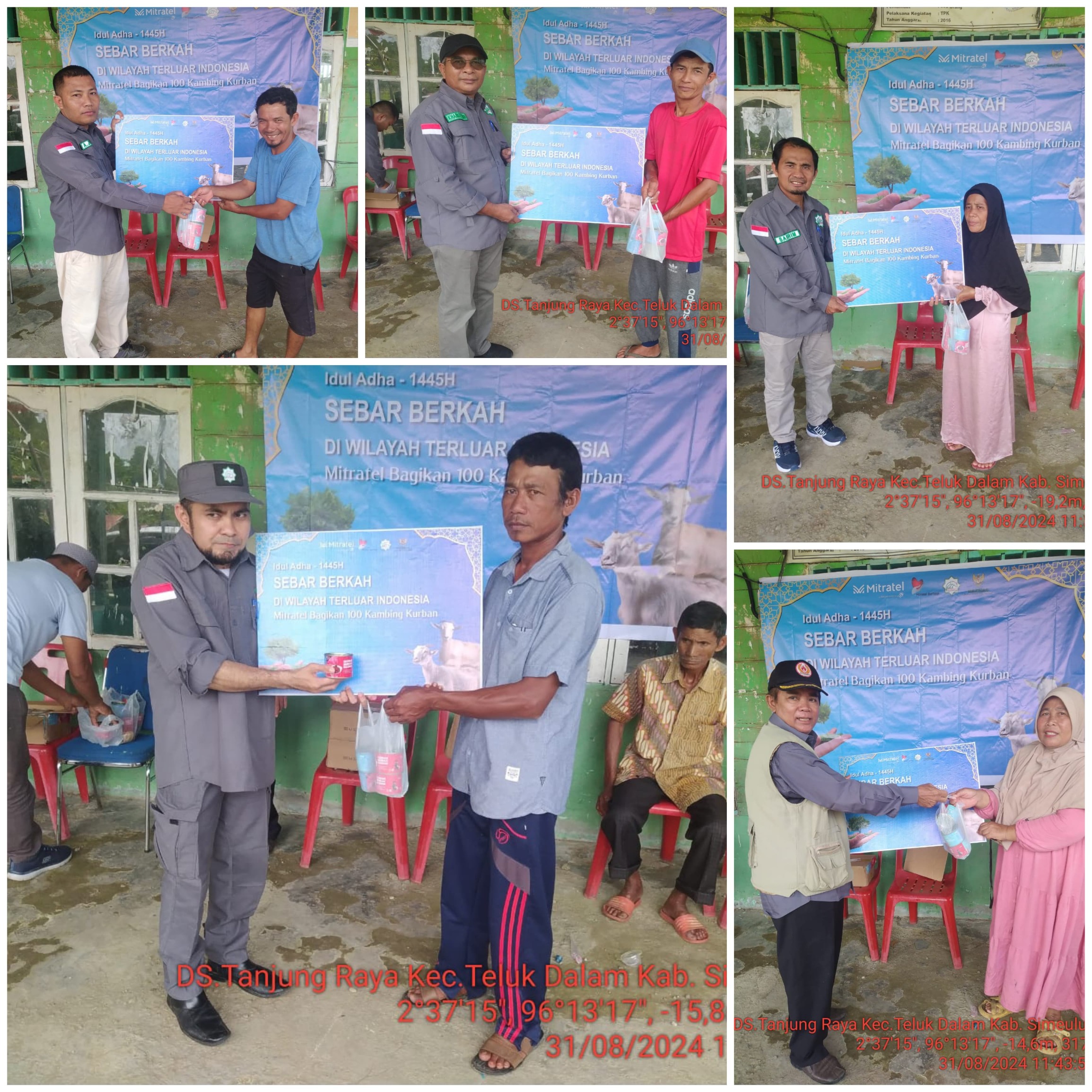 Baitul Mal Kabupaten Simeulue melaksanakan penyaluran ratusan paket daging kurban di Desa Ujung Harapan, Kec. Simeulue Barat dan Desa Tanjung Raya, Kec. Teluk Dalam, Sabtu, 31 Agustus 2024. Kegiatan tersebut merupakan hasil kerjasama antara BAZNAS RI dengan PT. Daya Mitra Telekomunikasi tbk (Mitratel) dan Baitul Mal Kabupaten Simeulue dalam mendukung pengentasan kemiskinan ekstrem dan pengurangan stunting bertepatan dengan momentum Hari Raya Idul Adha 1445 H dengan tema “Sebar Berkah di Wilayah Terluar Indonesia”. Program ini didasari oleh 3 hal, yaitu Keikhlasan, Pemerataan dan Berbagi Bersama.