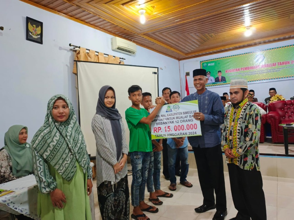 Baitul Mal Kabupaten (BMK) Simeulue melakukan Pembinaan Muallaf Tahun 2024. Pembukaan kegiatan berlangsung pada Jum’at, 29 November di Aula Wisma Harti, Sinabang dan dibuka oleh Pj. Bupati Simeulue dalam hal ini diwakili oleh Asisten I Setdakab Simeulue, Asludin, M.Kes.