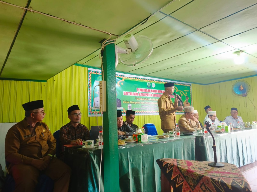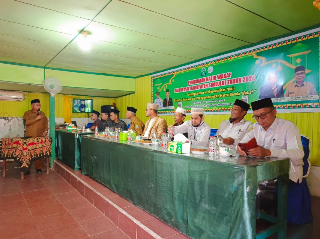 Baitul Mal Kabupaten Simeulue melaksanakan kegiatan Pembinaan Nazir Wakaf Tahun 2024. Kegiatan dibuka Pj. Bupati Simeulue dalam hal ini diwakili Asisten I Setdakab Simuelue, Asludin SE, M. Kes di Aula Losmen Andini Senin 9 Desember 2024 serta dihadiri 40 Peserta se-Kabupaten Simeulue. Kegiatan tersebut mengusung tema “Meningkatkan Profesionalitas Nazir dalam Mengelola dan Mengembangkan Harta Bendwa Wakaf”.